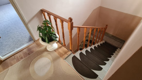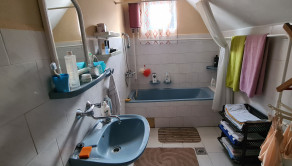 GEMINIBROKER v Hollóháze ponúka pekný 4 izbový rodinný dom v tichom prostredí. Tento rodinný dom bol postavený v roku 1993 z kameňa a tehál na mierne svahovitom pozemku s rozlohou cca 1057m2. Do domu sa dostaneme dvomi vchodmi. Na prízemí rodinného domu sa nachádza chodba, kuchyňa so špajzou, jedáleň, obývačka, kotolňa s východom na dvor , WC s umývadlom a miestom na sprchovací kút. Tiež sa na prízemí nachádza dielňa, z ktorej sa dá urobiť garáž alebo ďalšia izba. Na poschodí rodinného domu sa nachádzajú 3 samostatné spálne, kúpeľňa s vaňou a umývadlom a samostatné WC. Okná a dvere sú pôvodné drevené. Podlahy: na chodbe, v kúpelni a kuchyni je dlažba, v obývačke je plávajúca podlaha a v izbách na poschodí je beton a koberec. V dome je zavedený obecný vodovod, elektrina 240V aj 380V. Plynová prípojka je na pozemku. Kanalizácia je riešená formou žumpy. Strecha je v dobrom stave. Strešná krytina - eternit. Vykurovanie je zabezpečené kotlom na tuhé palivo. Zdroj teplej vody je plynový kotol - na plynové bomby. Na dvore sa nachádzajú ovocné stromy - jablko, hruška, slivka, višňa, skladové priestory a dreváreň.